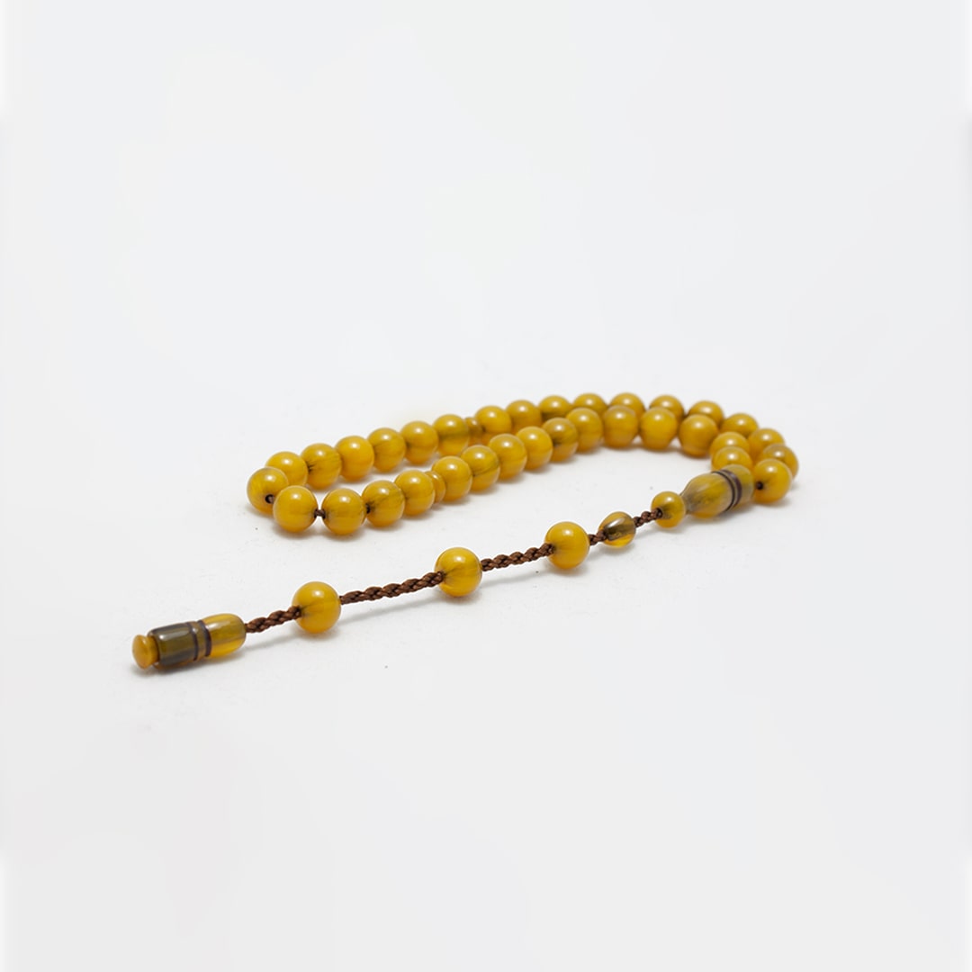 سبحة فاتوران ، حبة طويلة ، موديل دائري ، لون أصفر ، عدد الحبات 33 خرزة